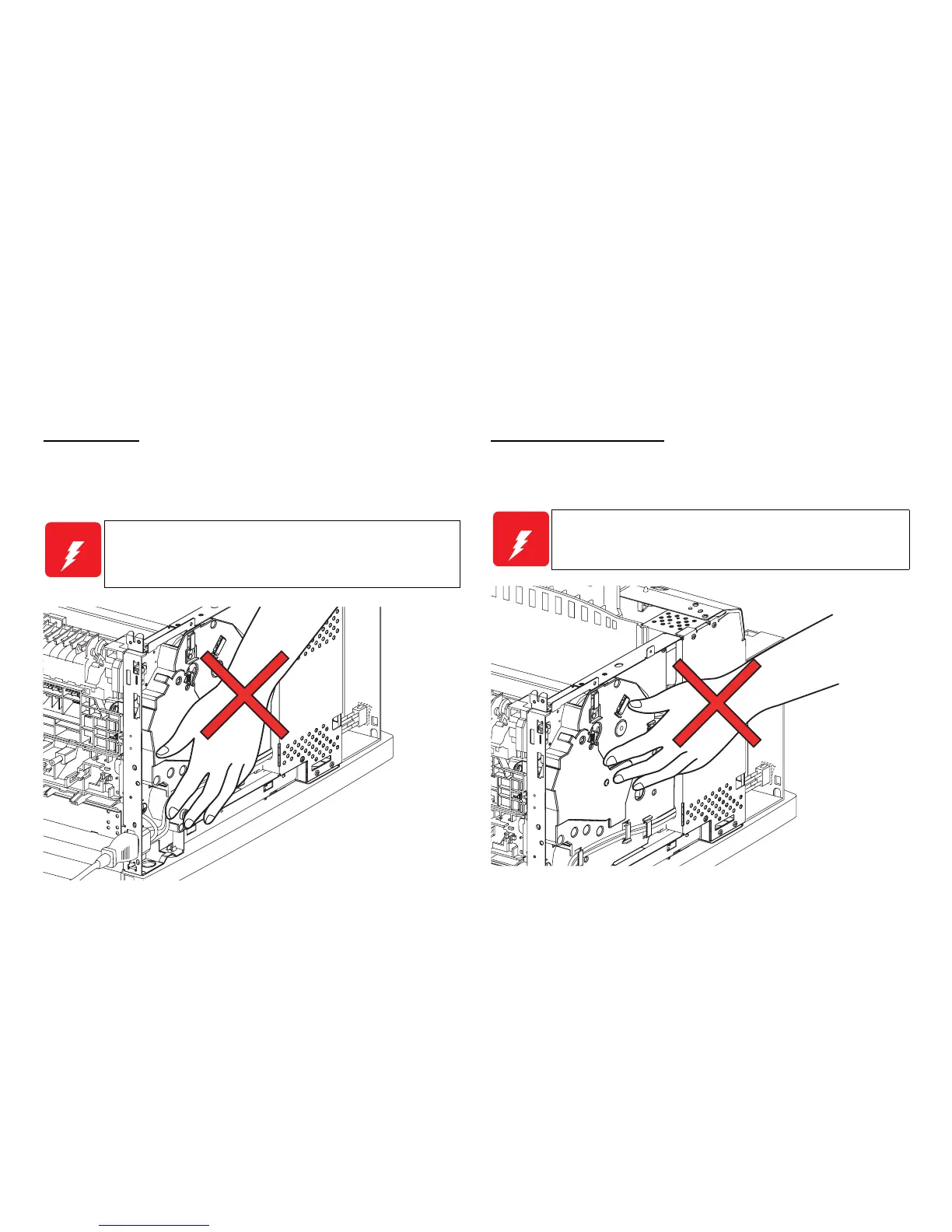 Before starting any service procedure, switch off the printer power and unplug the