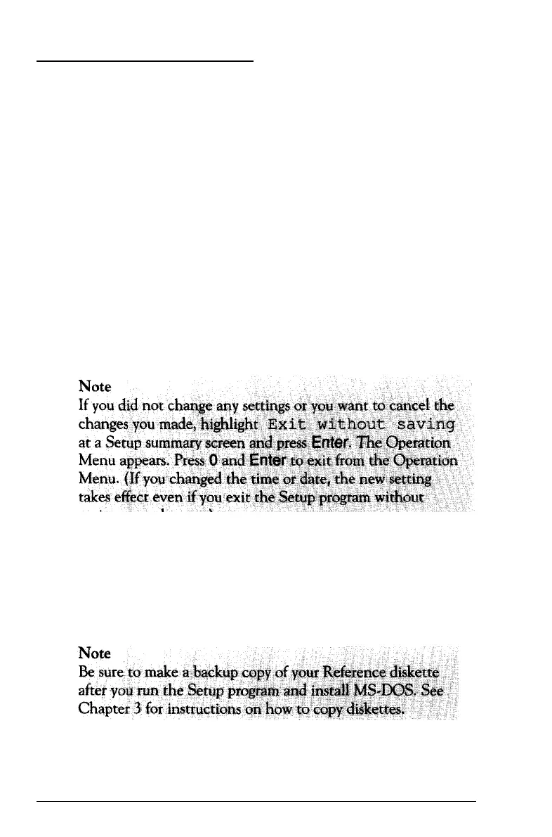 summary screen. The Setup program stores the new settings and