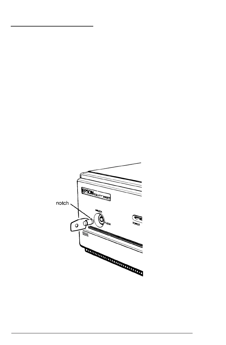 The key lock on the front panel of the computer allows you to
