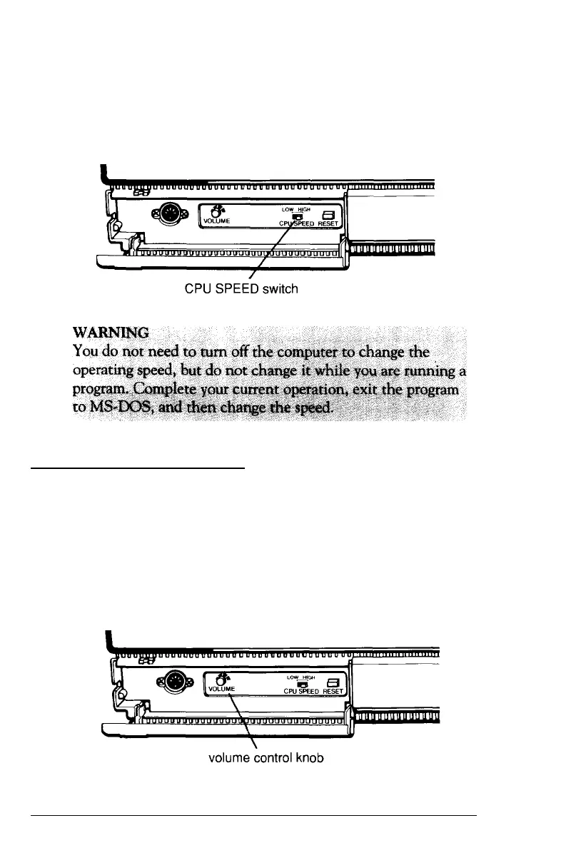 Use the CPU SPEED switch on the front panel to change the