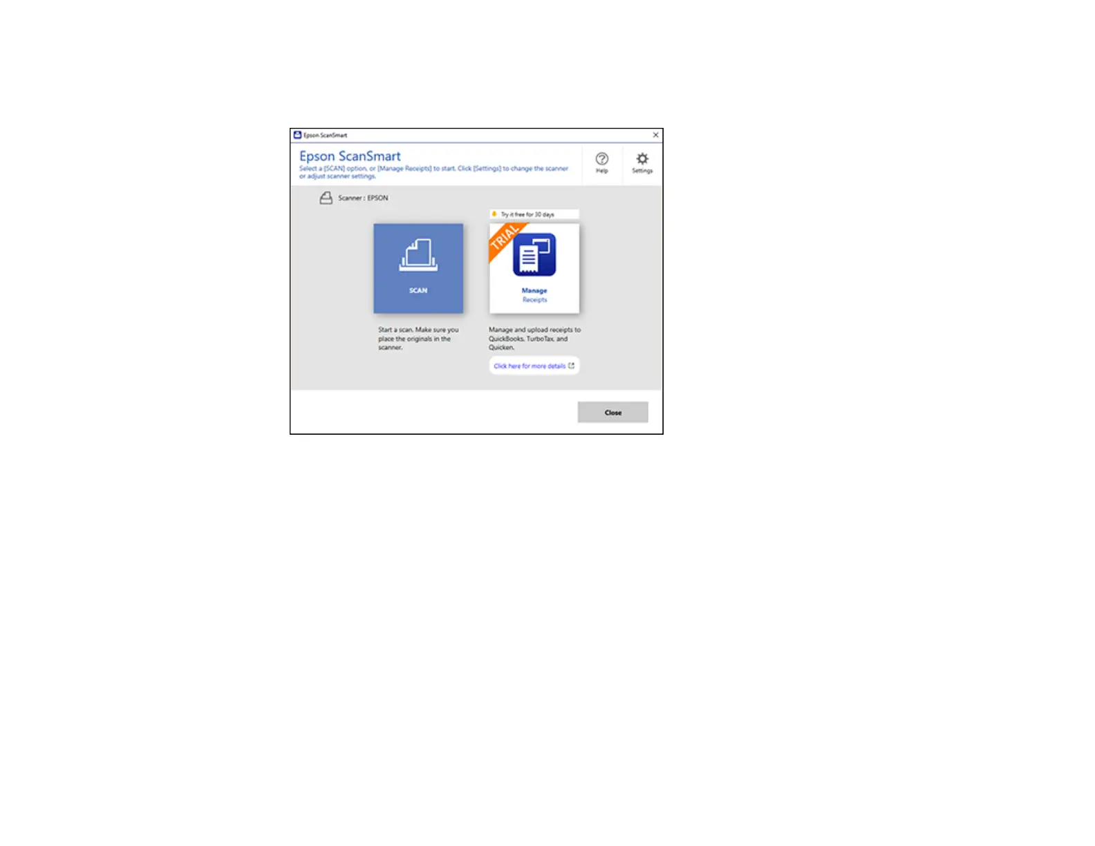 Click the Manage Receipts icon on the main Epson ScanSmart screen.