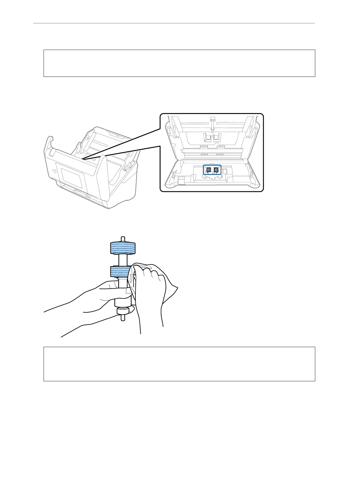 Wipe o any dust or dirt on the separation roller using a genuine Epson cleaning kit or a so, moist cloth.