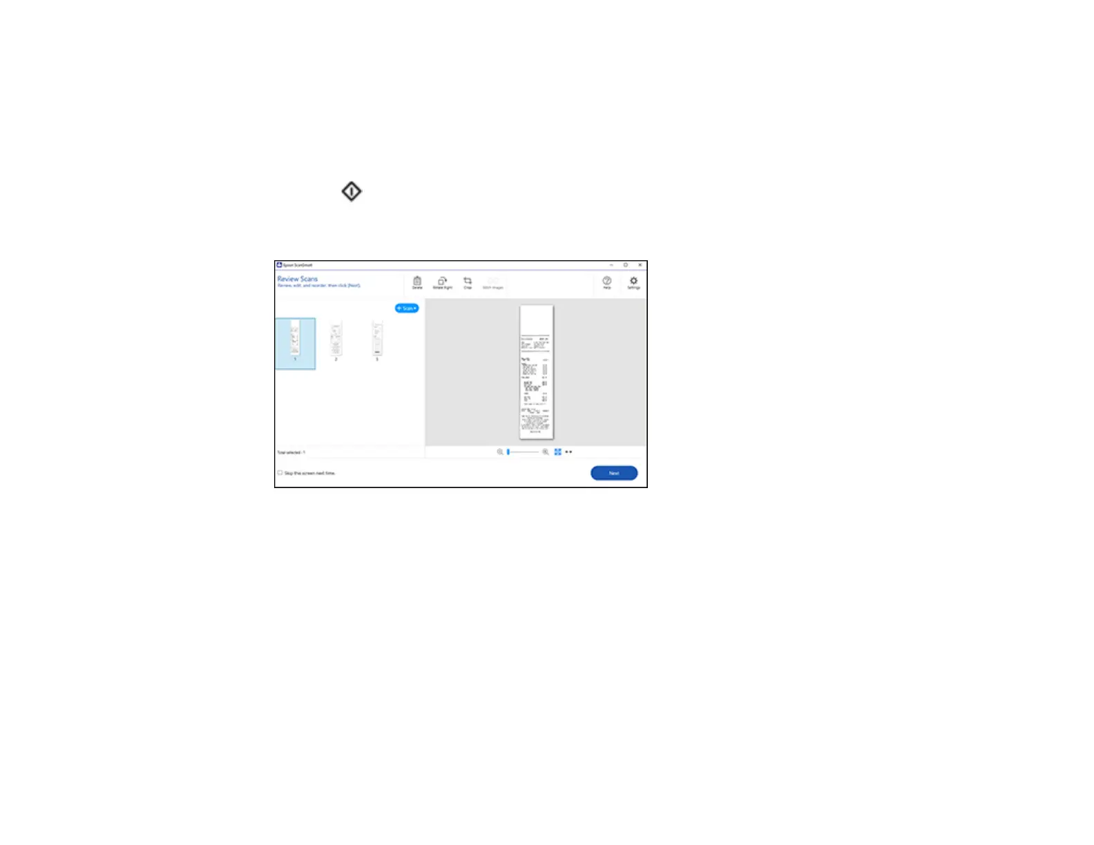 Epson ScanSmart automatically opens on your computer and the scan job begins. The receipts feed