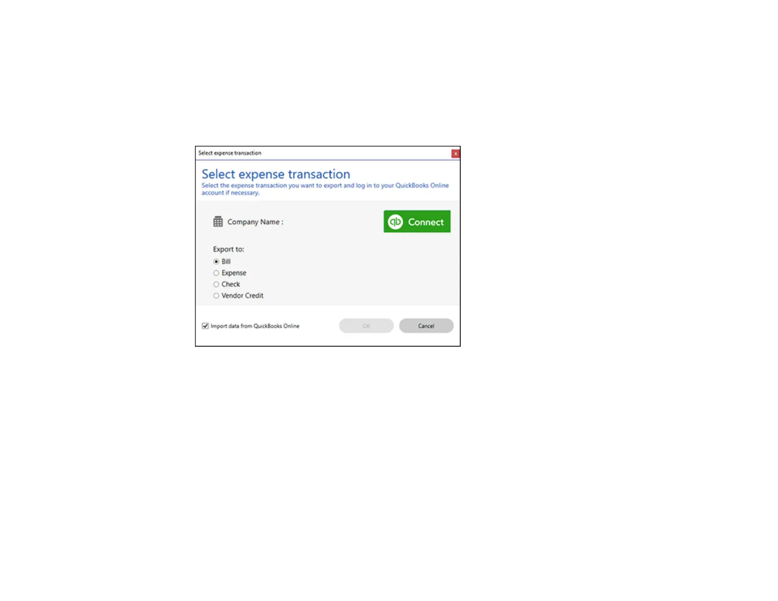 Note: If you want to import data such as vendors, categories, or payment methods from QuickBooks