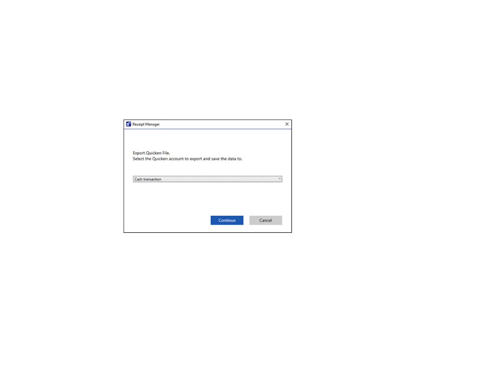 • Select Cash transaction and click Continue to save the receipt data as a QIF file.