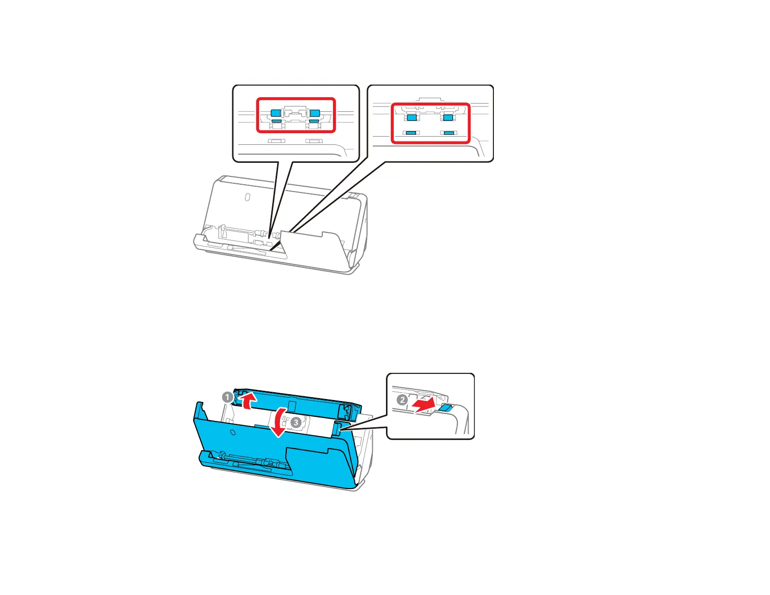 2. Wipe the rollers and plastic rollers with a soft, lint-free cloth dampened with a small amount of