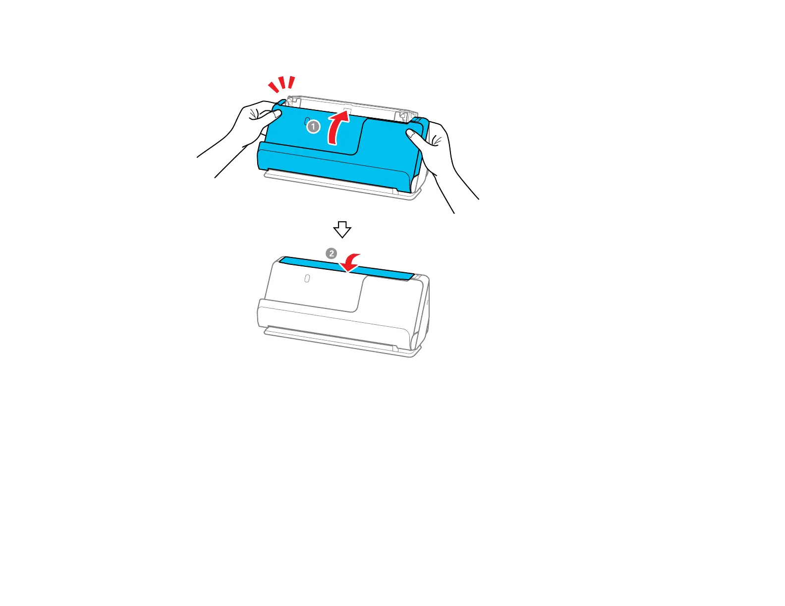 10. Close the scanner cover with both hands, then close the input tray.