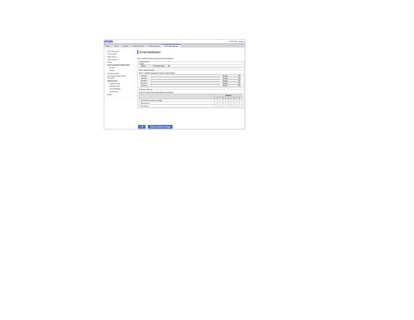 You can check or update the network information for your product using the Web Config interface.