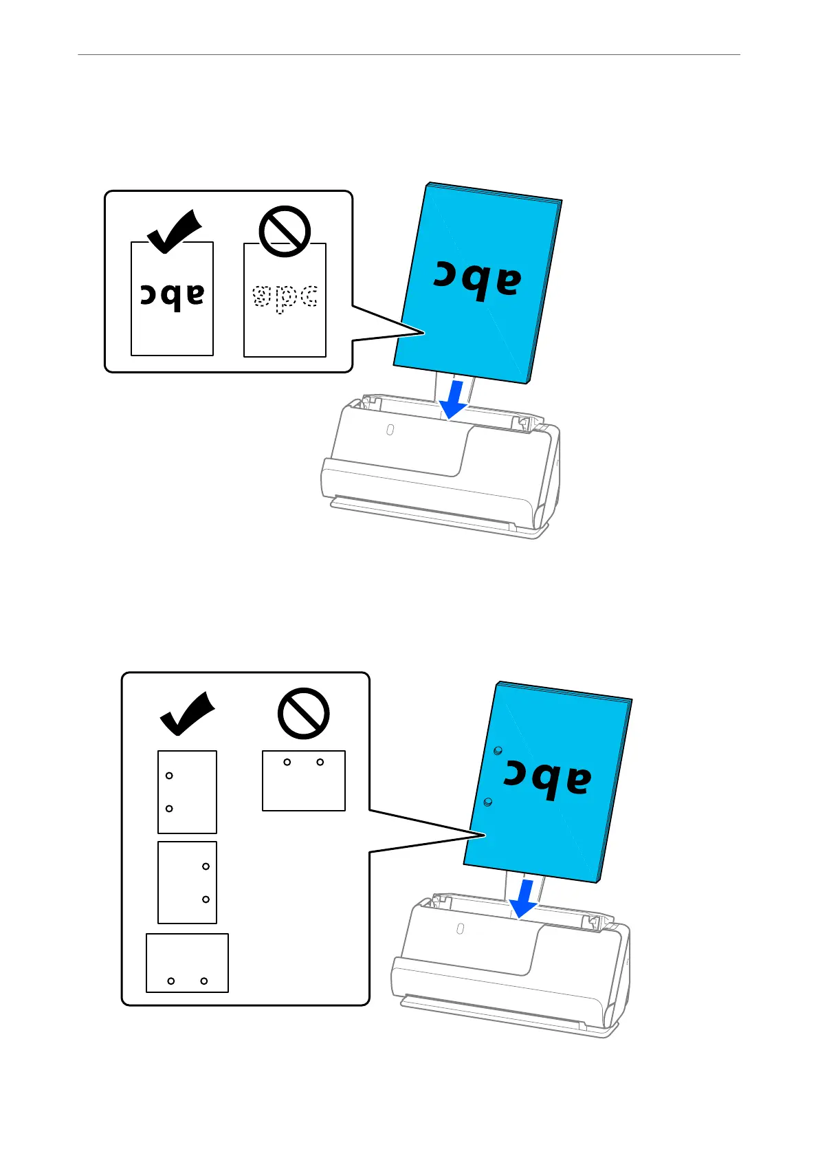 ❏ When scanning originals with punch holes, such as loose leaf paper, load the originals with the holes facing