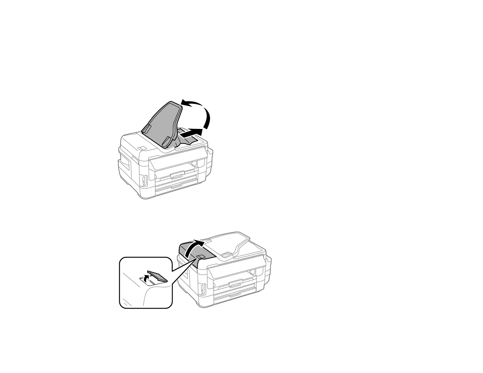 4. Lift up the ADF cover latch and open the ADF cover.