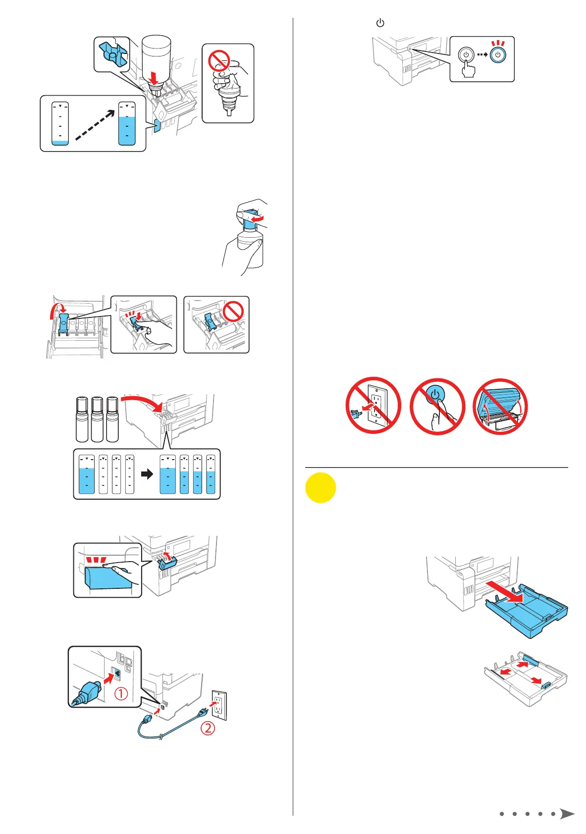 Caution: Do not shake or squeeze the ink bottles. Do not touch