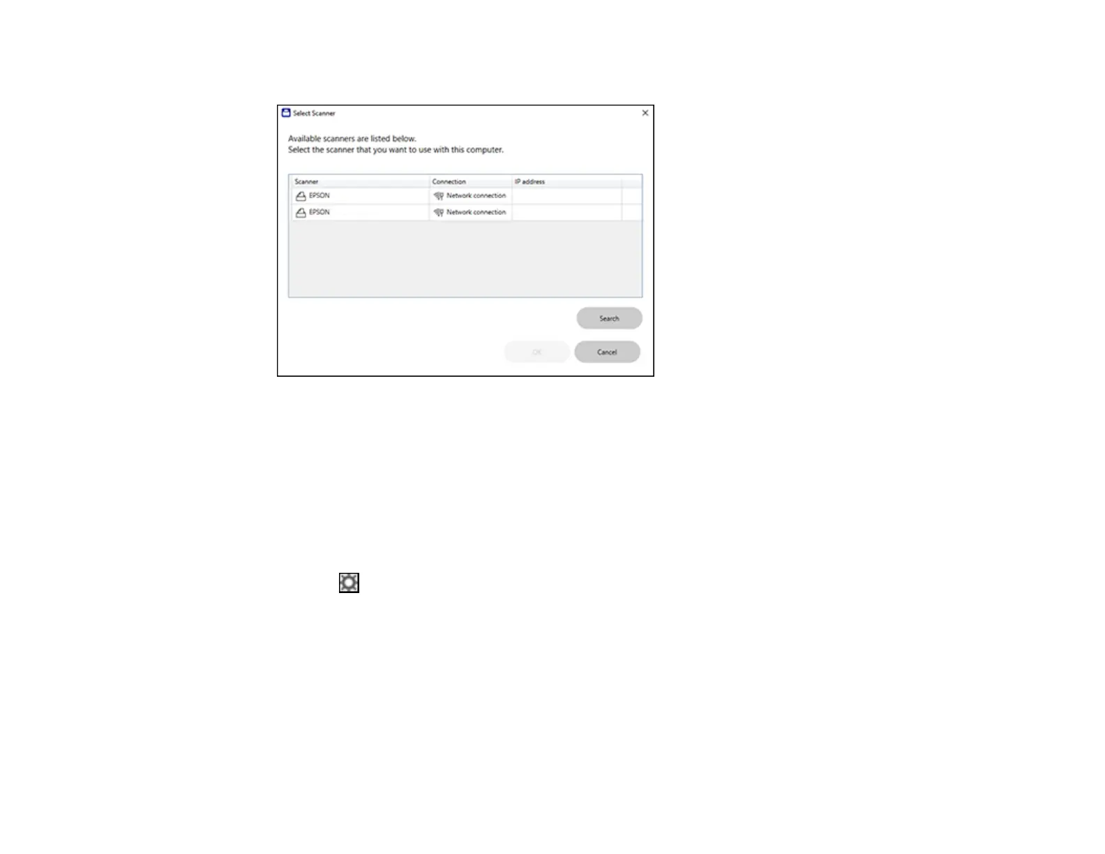 2. Select the Epson product you want to use with your computer and click OK.