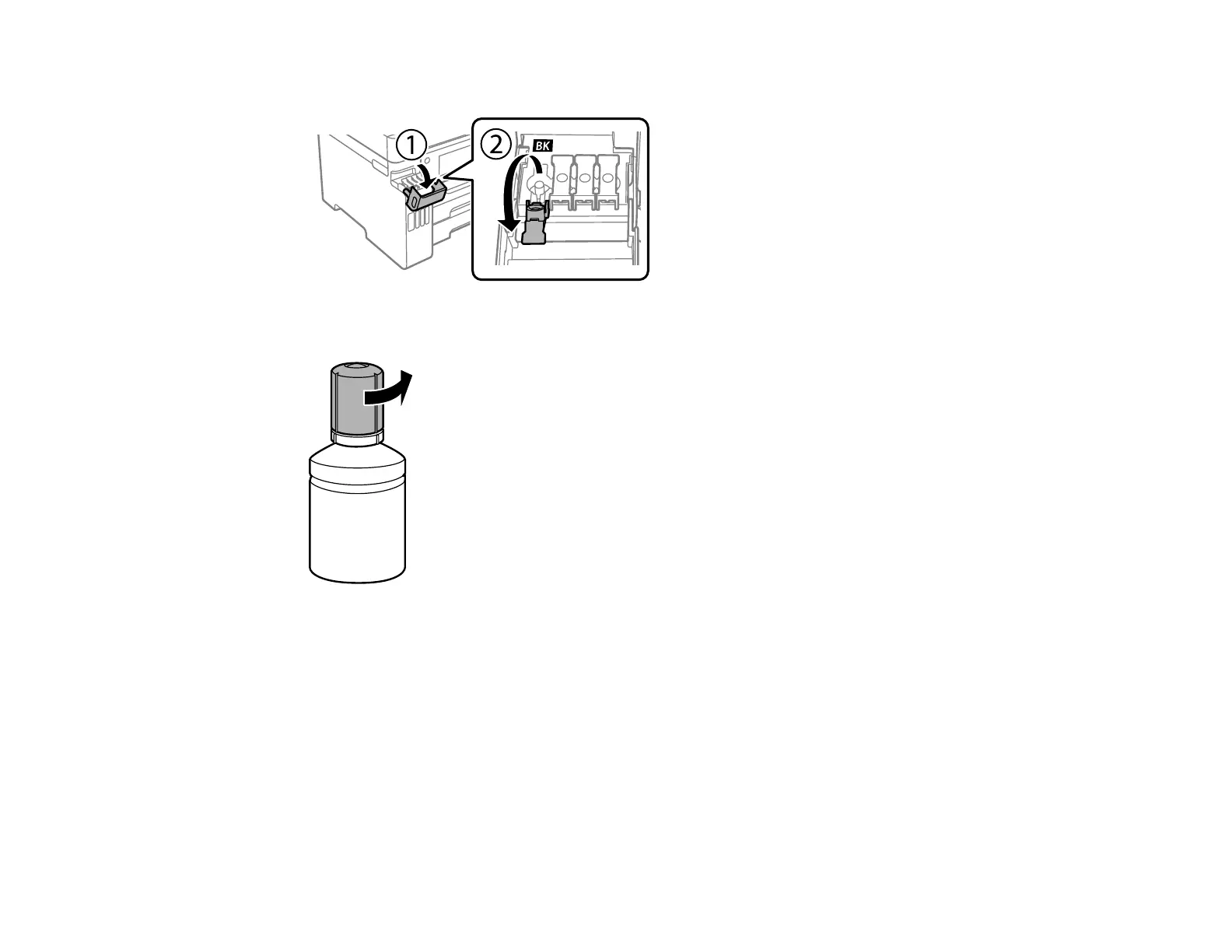 Caution: Do not shake or squeeze the ink bottle. Do not touch the top of the bottle after its cap is