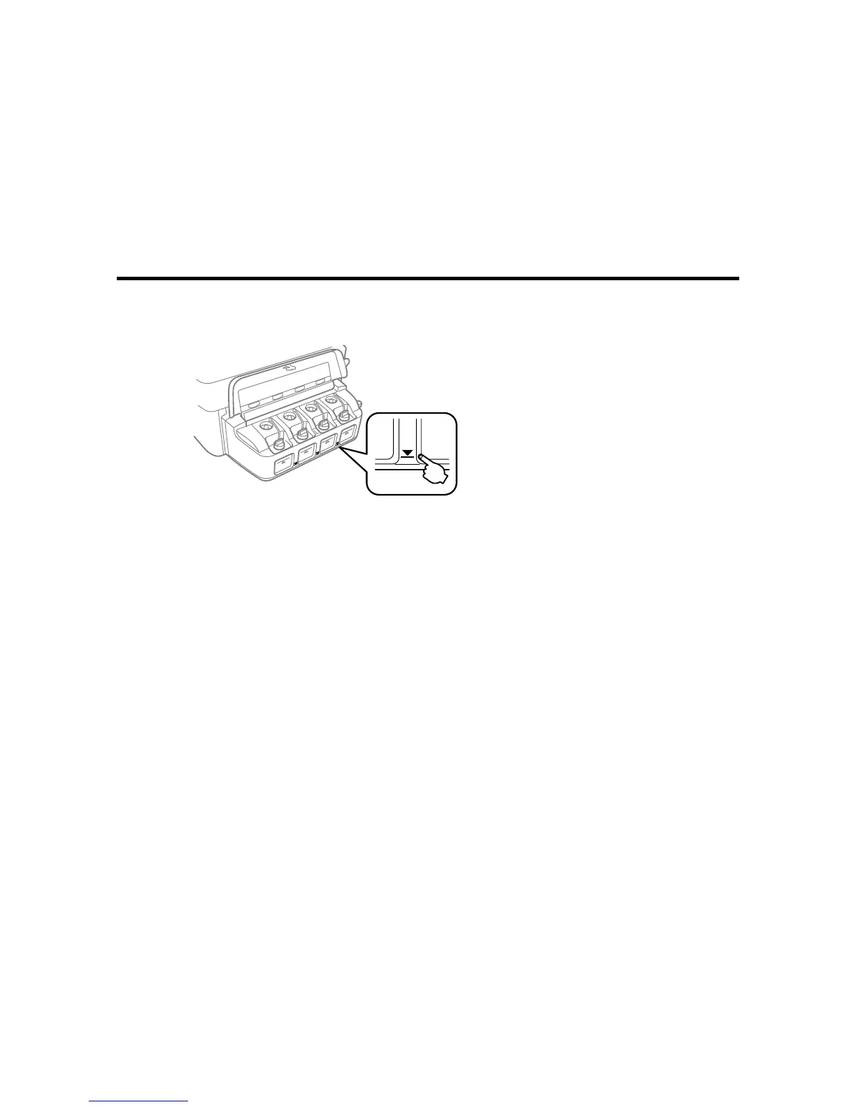 Caution: If the ink level is below the lower line on the ink tank, fill it to the upper line on the ink tank.