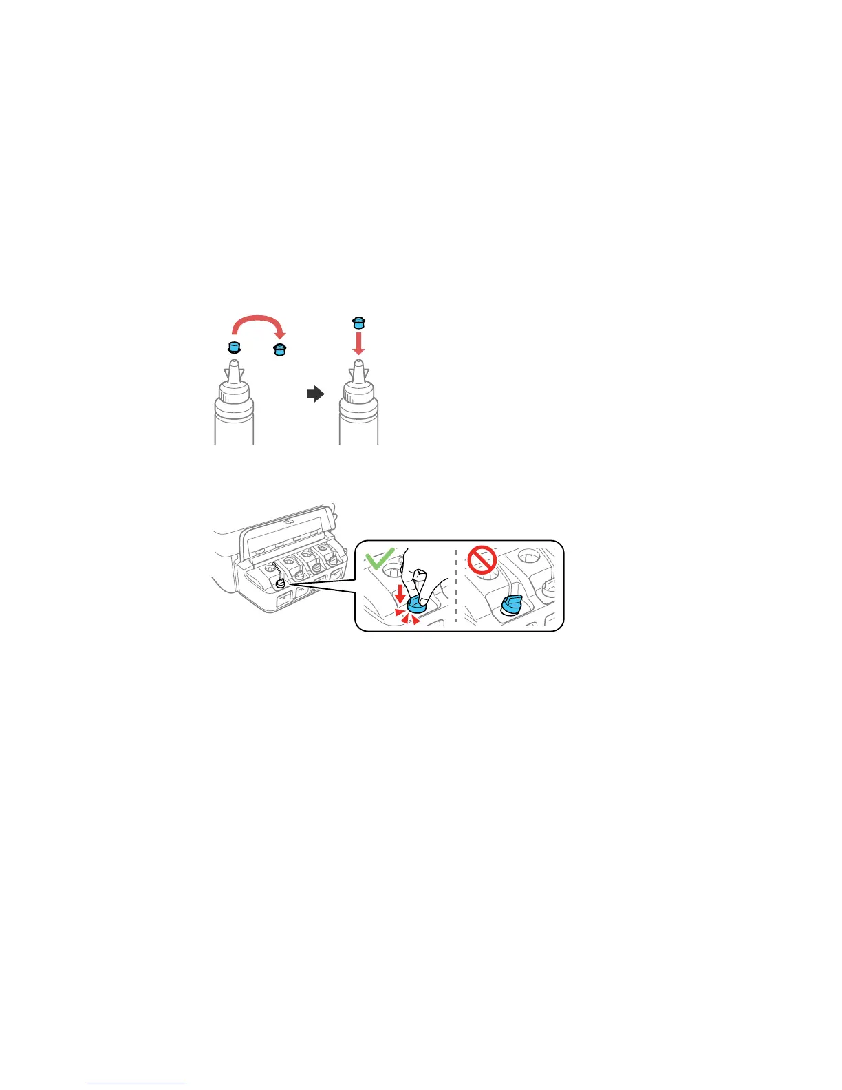 5. If any ink remains in the ink bottle after filling the ink tank, place the bottle cap tip securely on the