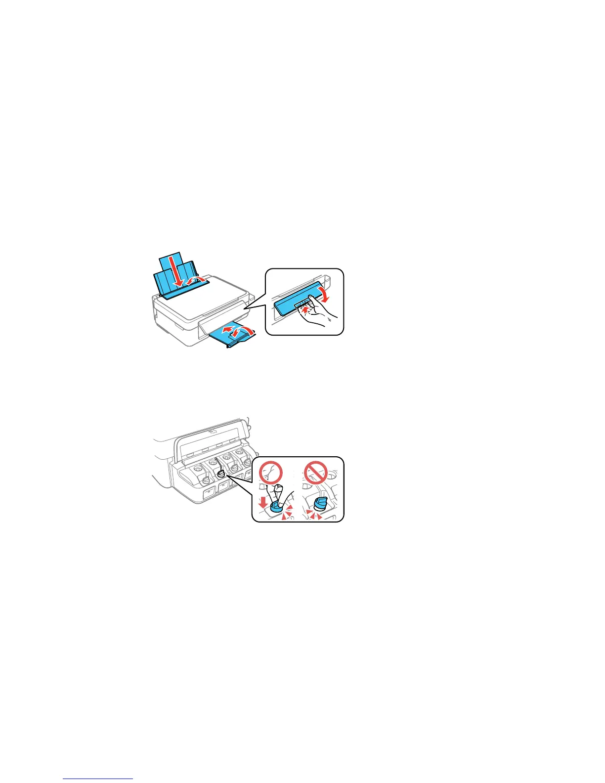 9. Open the ink tank unit cover and check to make sure that the ink tank caps are installed securely.