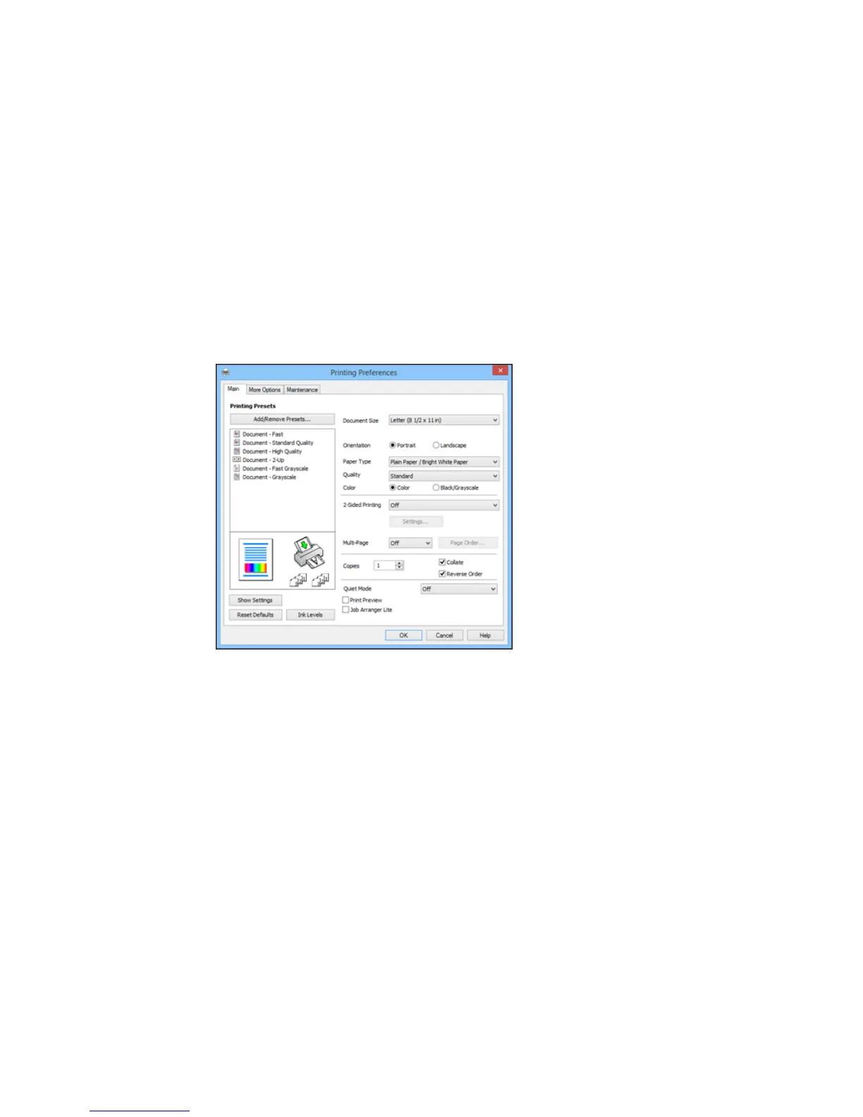 Note: You may also need to select Properties or Preferences to view your print settings.