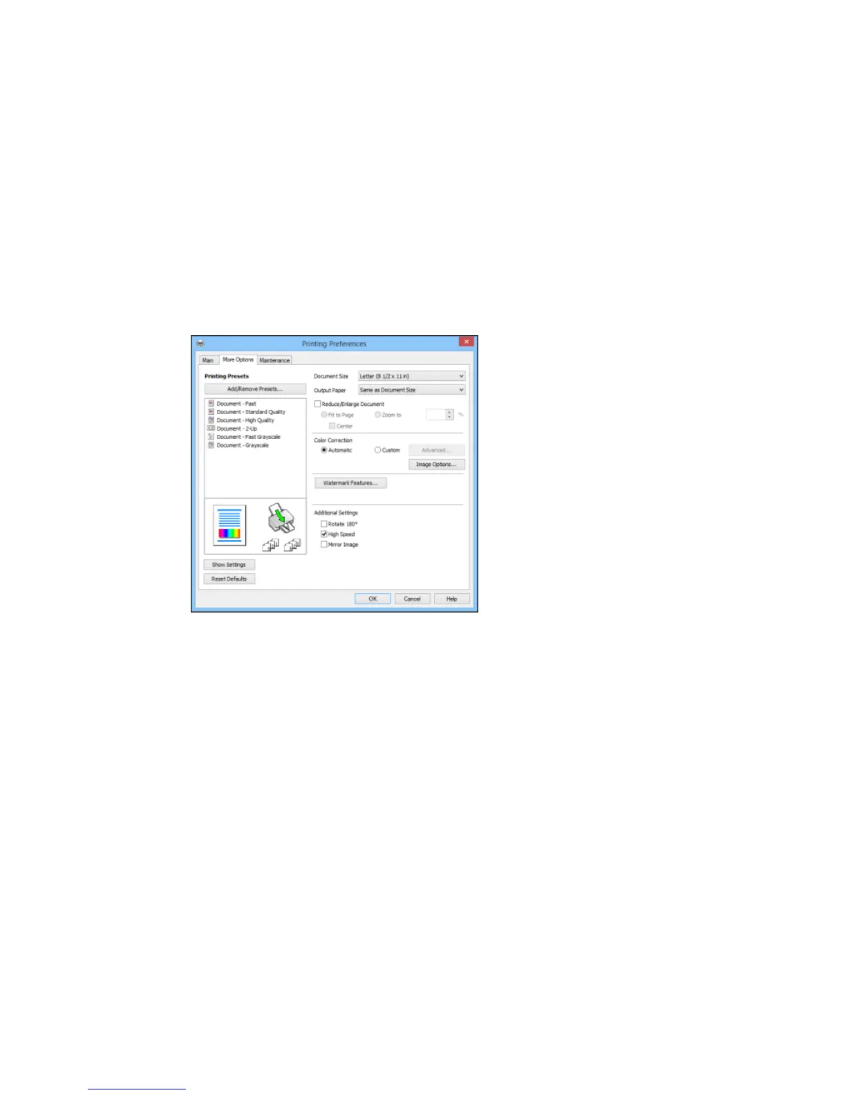 You can select a variety of additional layout and printing options for your document or photo on the More