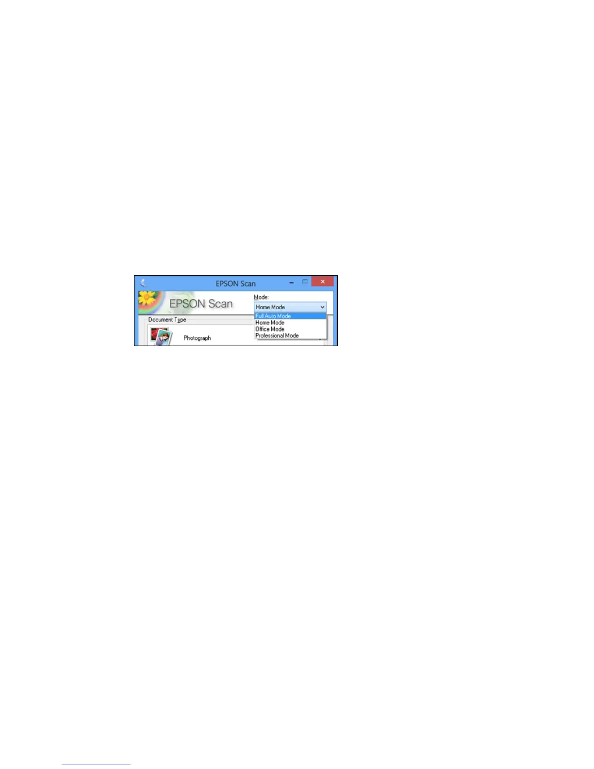 Select the Epson Scan mode you want to use from the Mode box in the upper right corner of the Epson