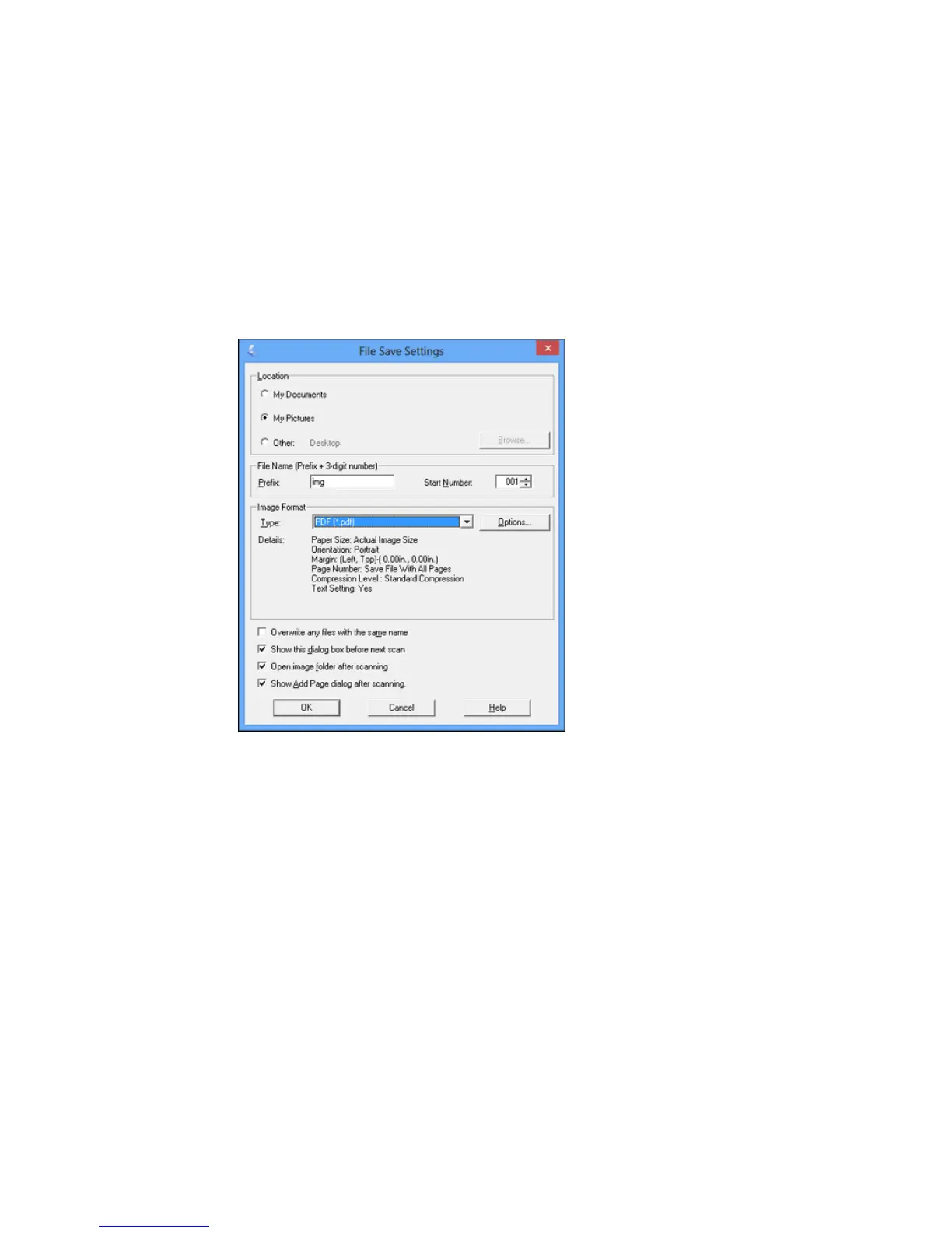 8. Select any other settings you want to use on the File Save Settings window. Click the Options
