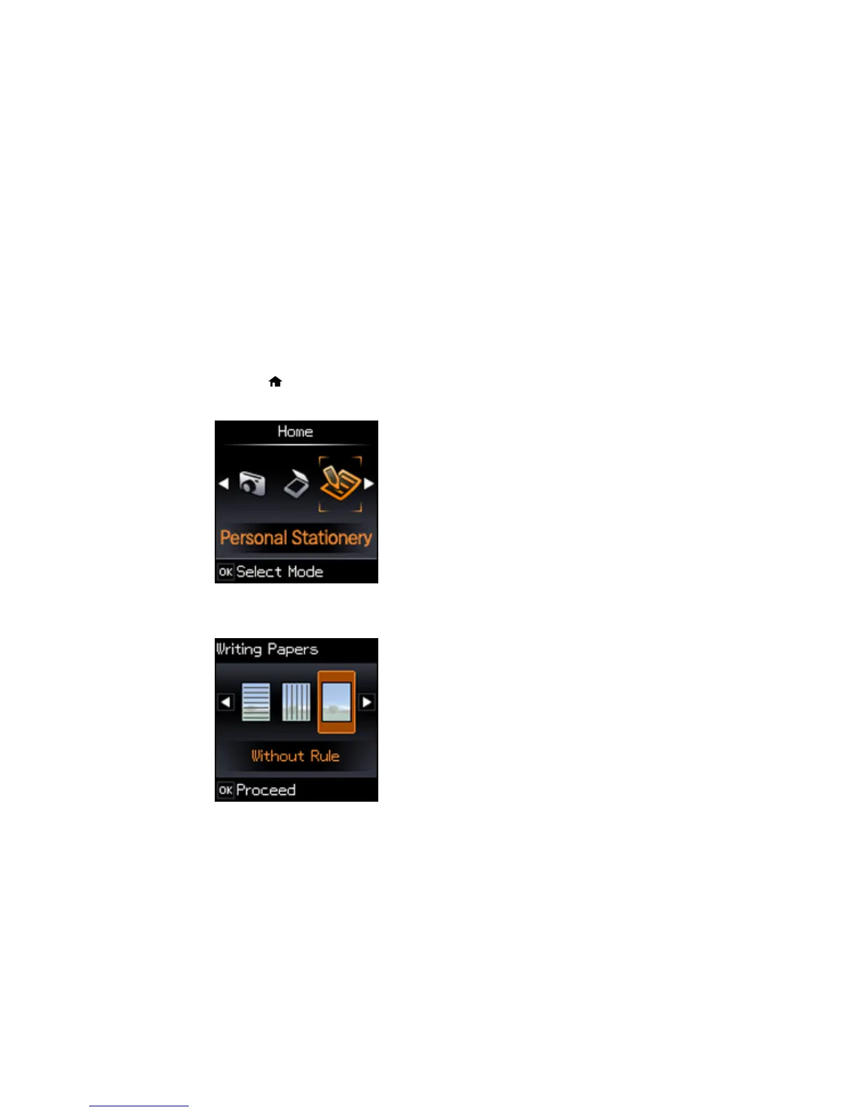 4. Press the left or right arrow button to select Personal Stationery and press the OK button.