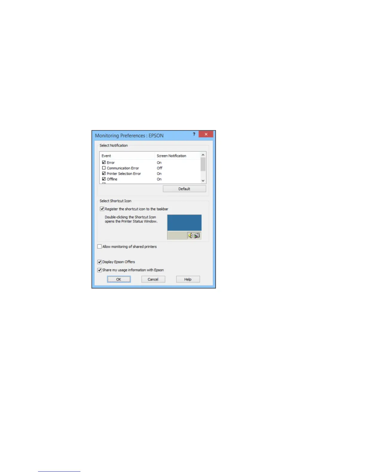 2. To disable promotional offers, deselect the Display Epson Offers checkbox.