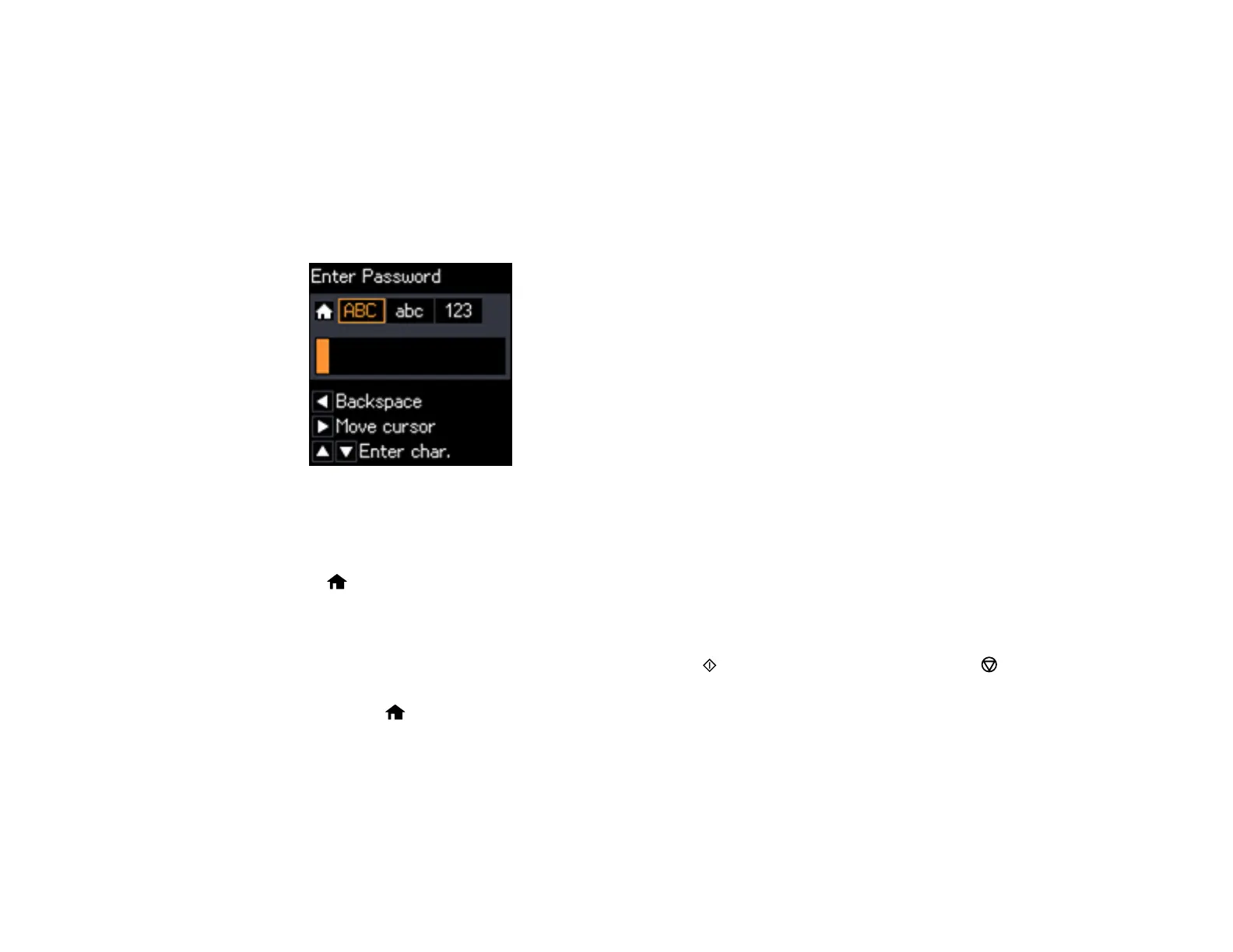• To switch between ABC (uppercase), abc (lowercase), or 123 (numbers and symbols), press the