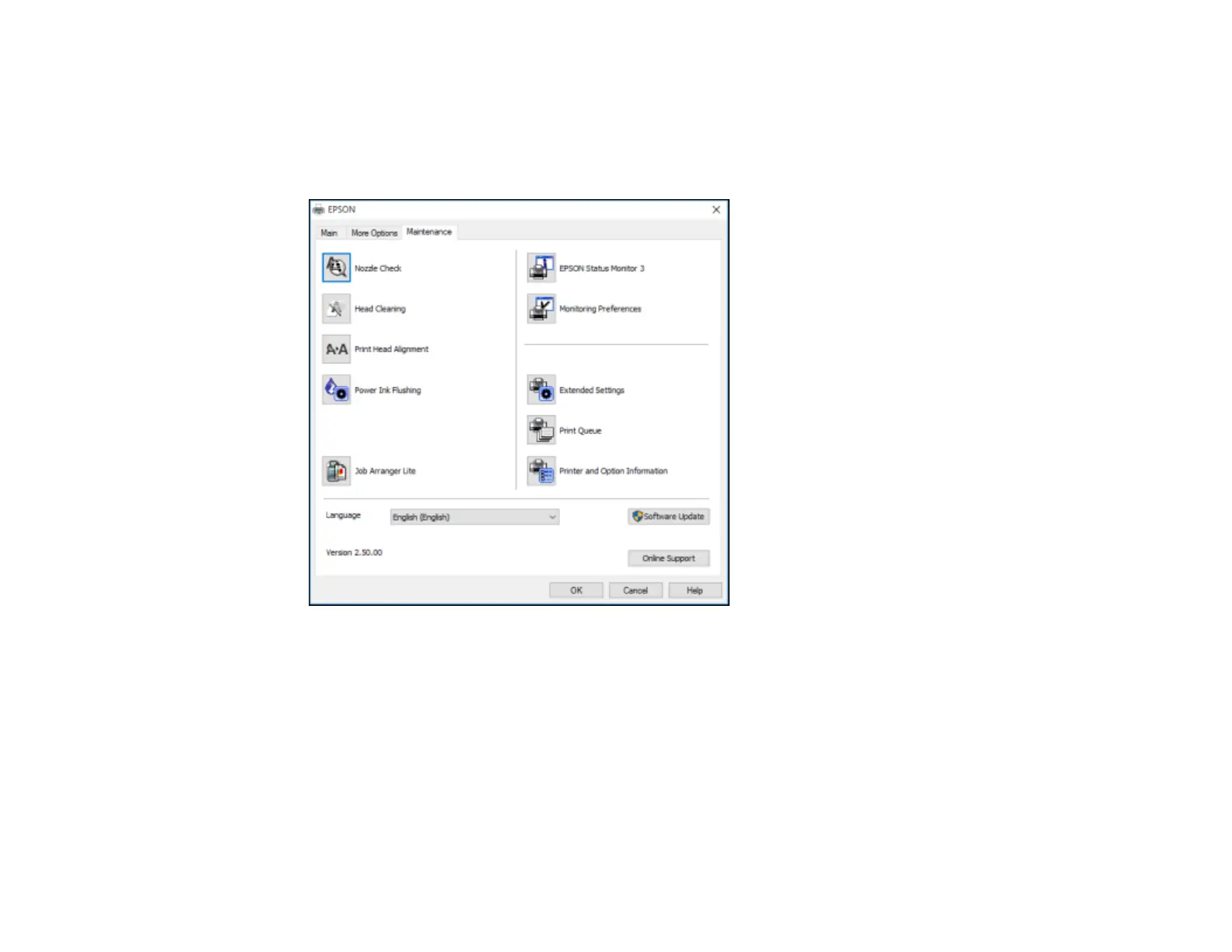 The printer software screens appear in the language you selected the next time you access them.