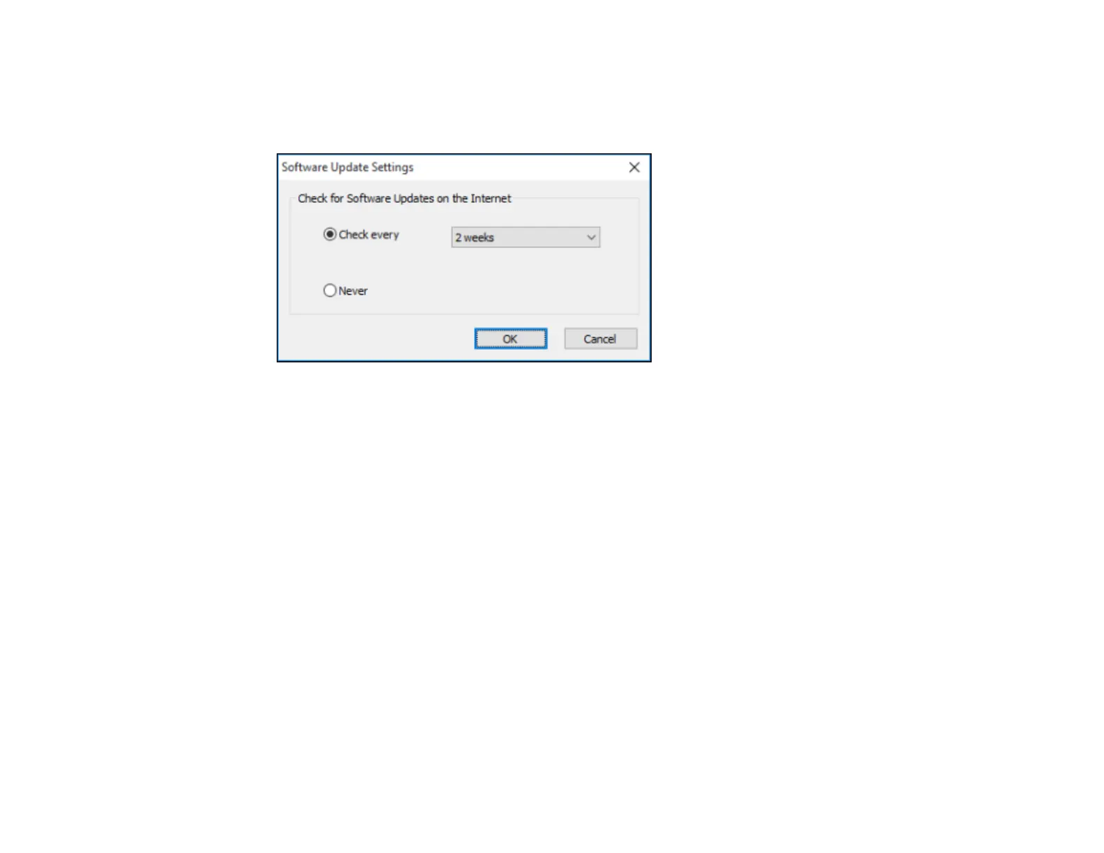 • To change how often the software checks for updates, select a setting in the Check every menu.