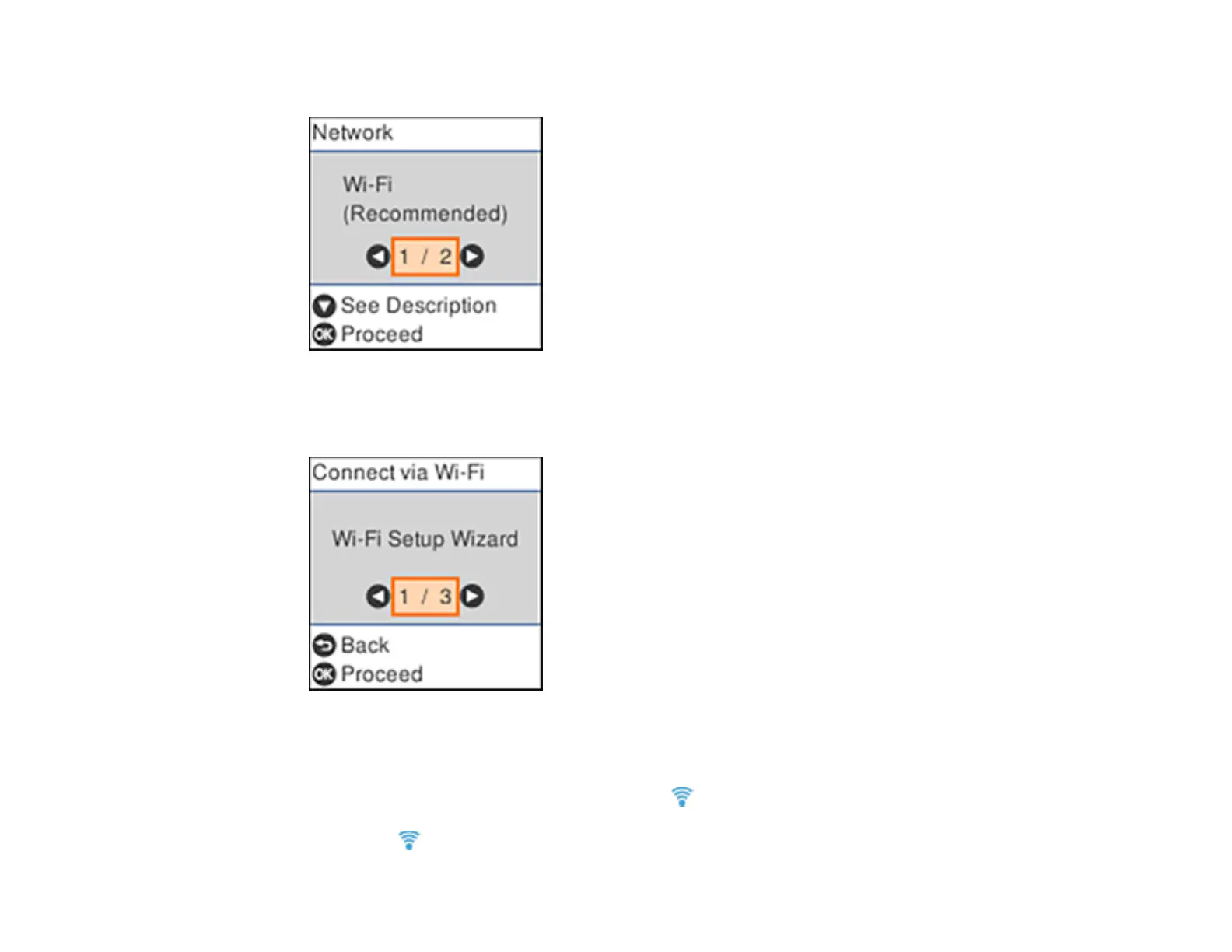 Note: If the Wi-Fi icon is not displayed on the LCD screen, repeat these steps to try again.