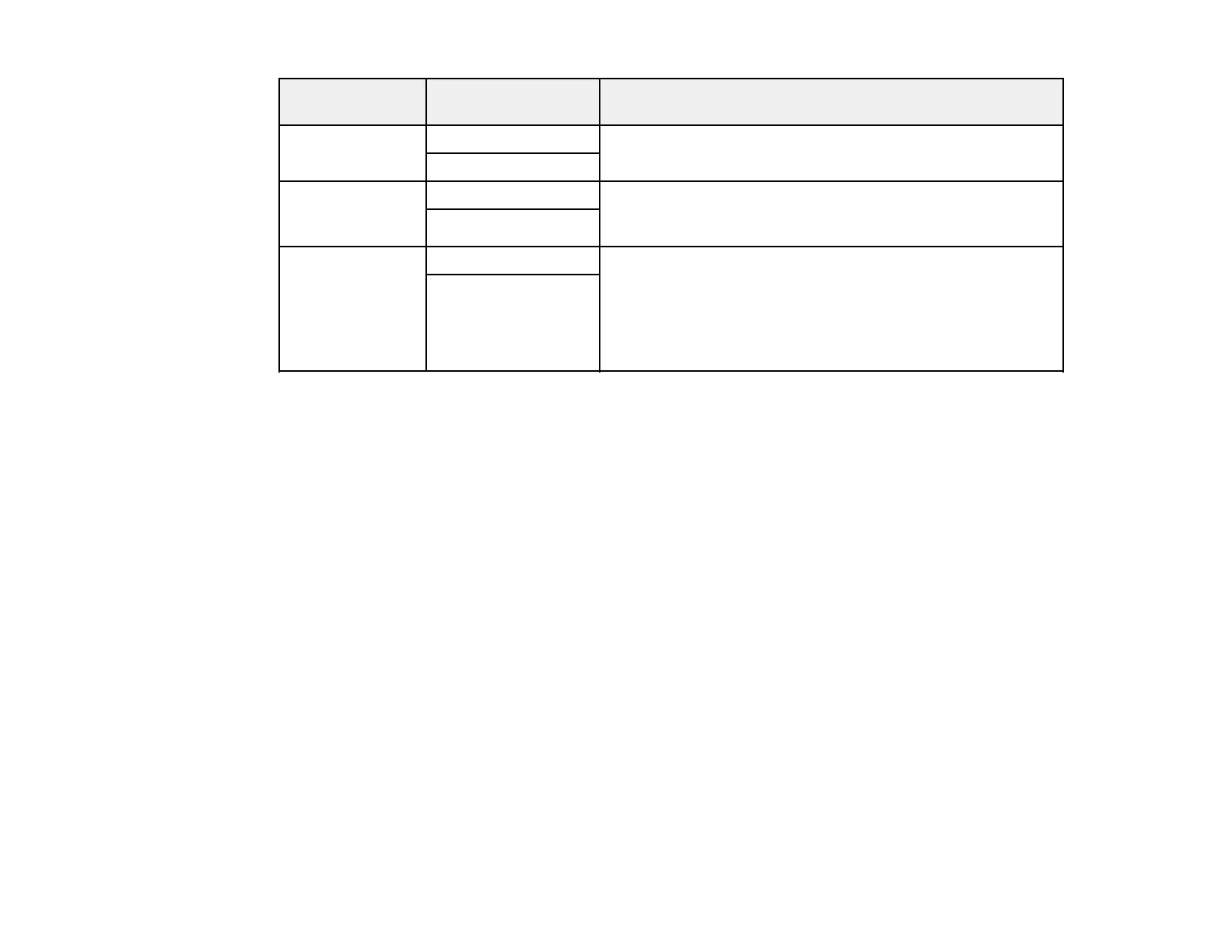 Available settings Description