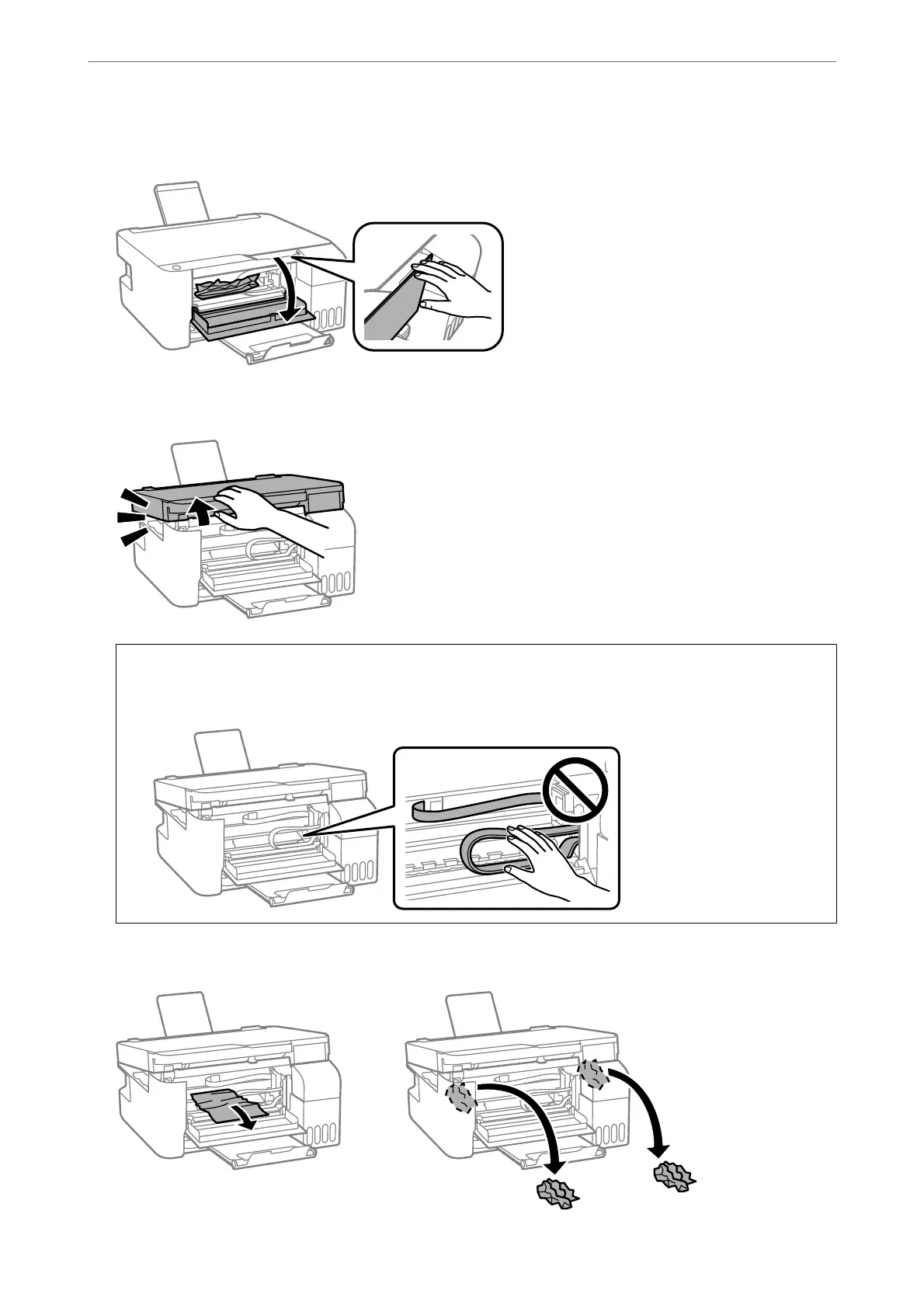 Do not touch the parts shown in the illustration inside the printer. Doing so may cause a malfunction.
