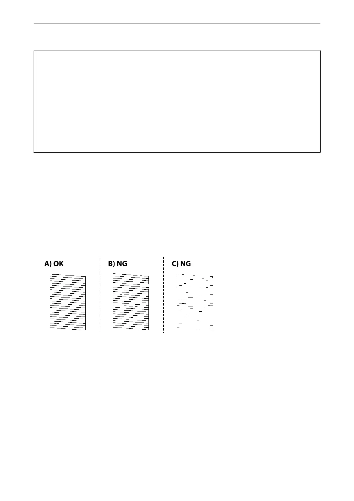 If most lines are missing or not printed, this indicates most nozzles are clogged. Select No to exit the nozzle