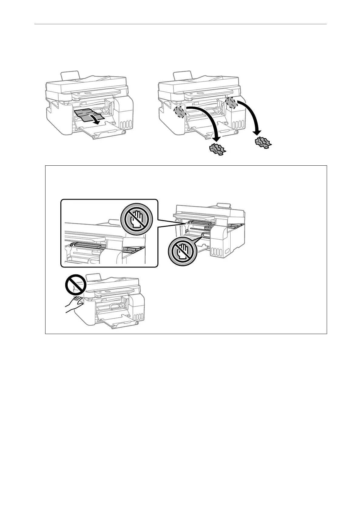 Do not touch the parts shown in the illustration inside the printer. Doing so may cause a malfunction.
