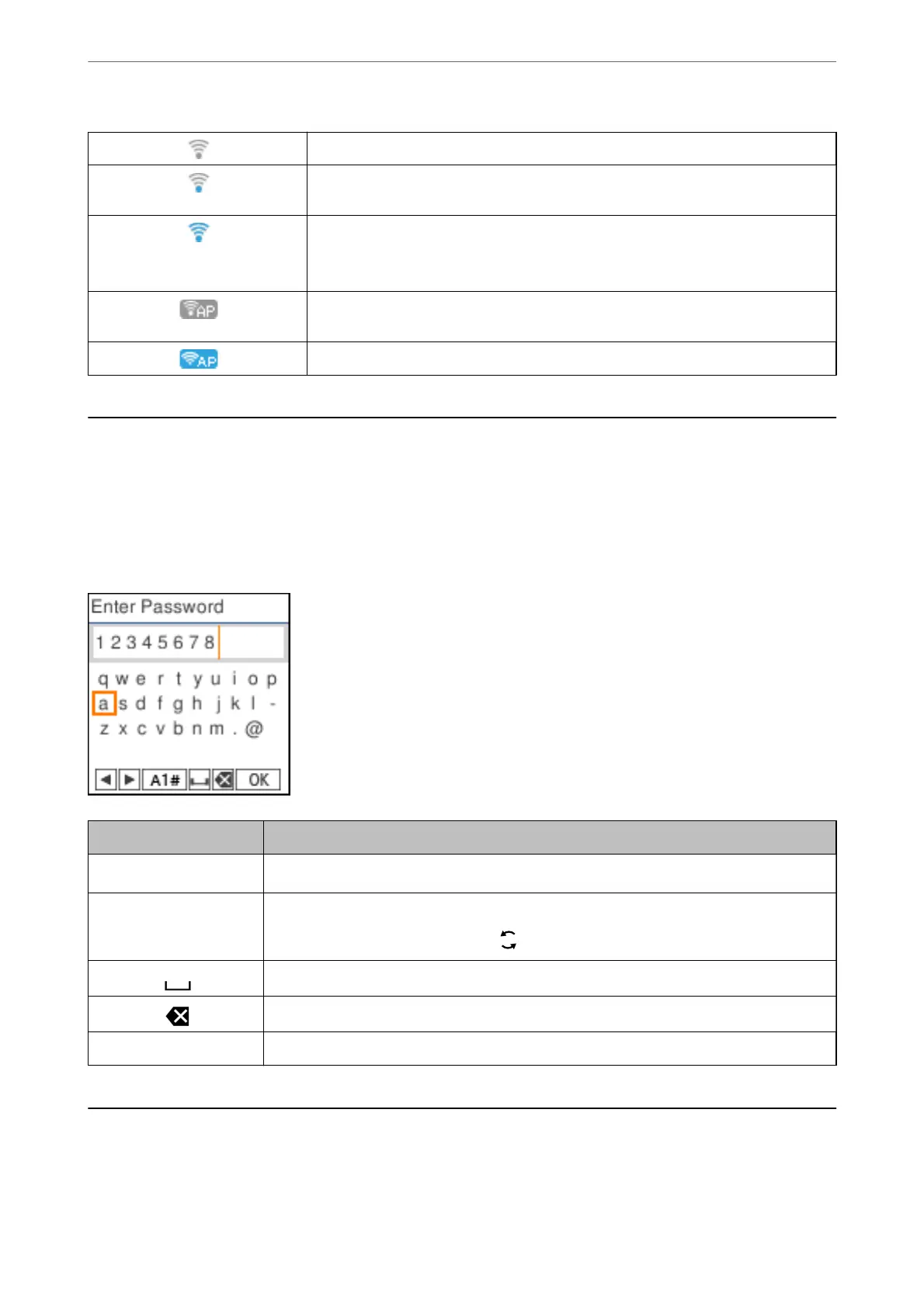 A 1 # Switches the character type. You can enter alphanumerics or symbols.