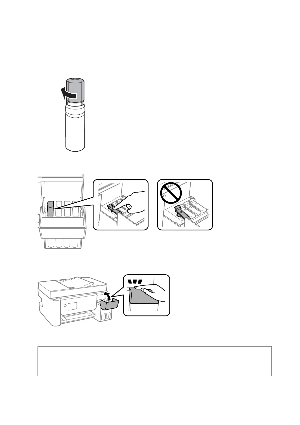If any ink remains in the ink bottle, tighten the cap and store the bottle upright for later use.