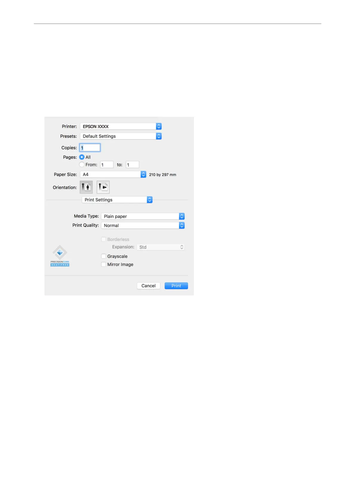 Select Print from the File menu or another command to access the print dialog.