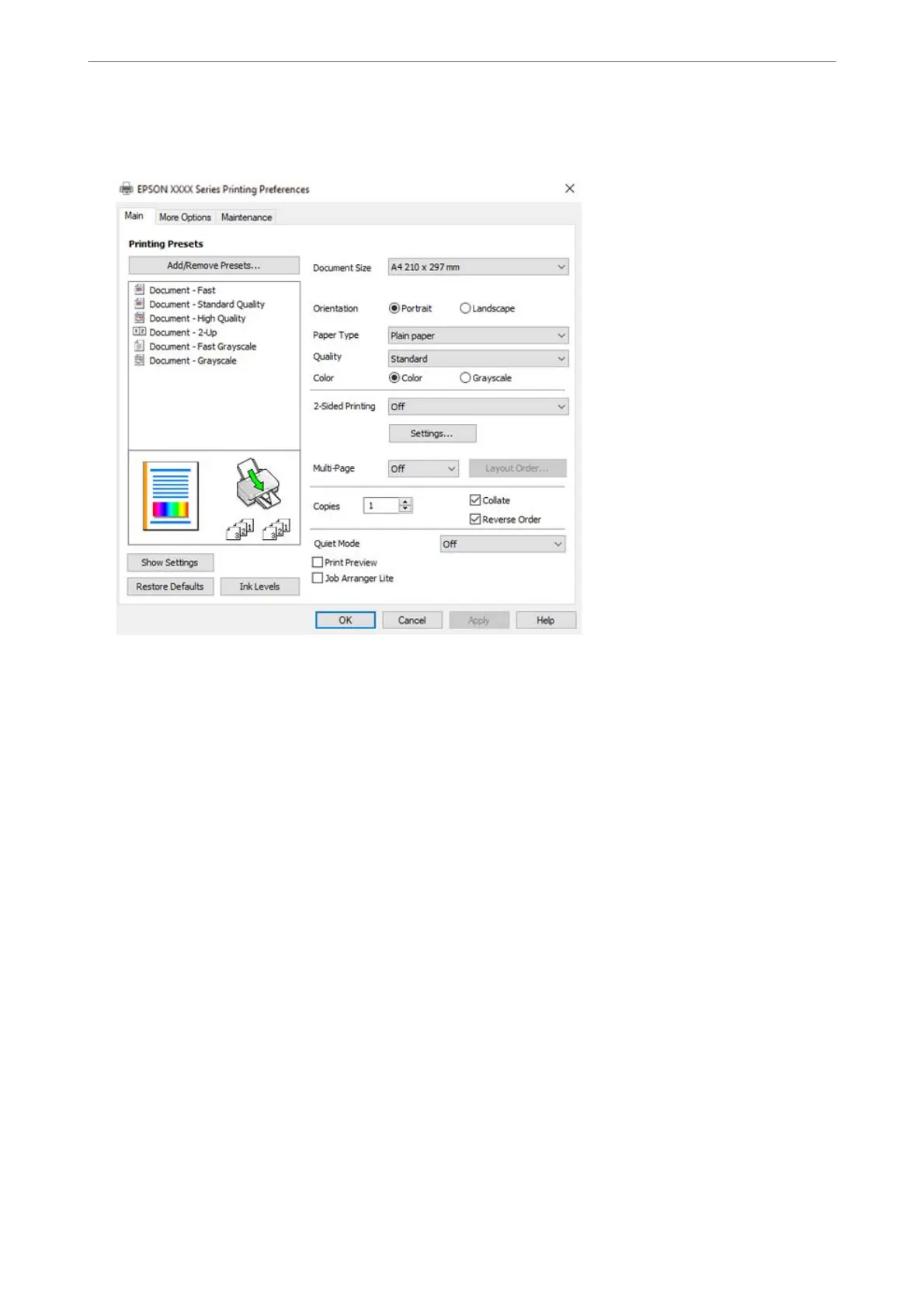 Select Preferences or Properties to access the printer driver window.