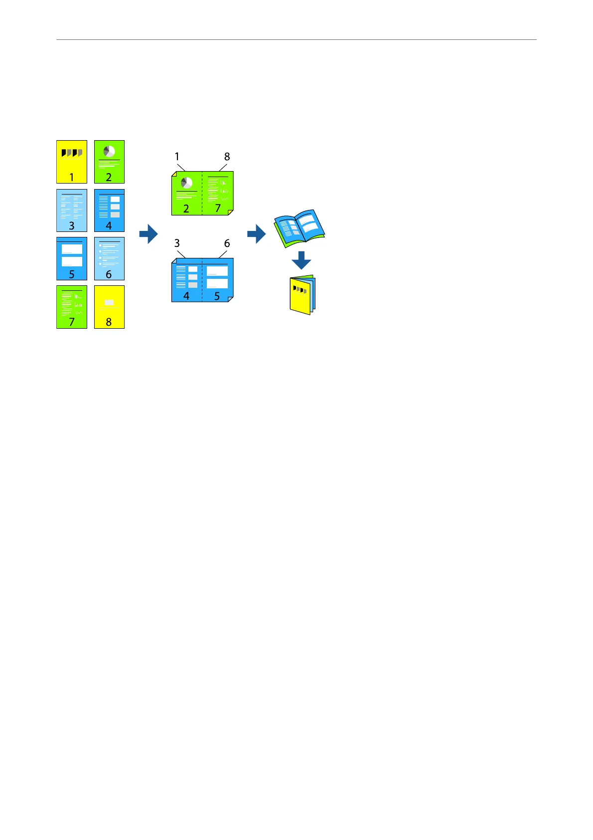 ❏ Side Binding. Use this method when printing one sheet (four pages) at a time, folding each in half, and then