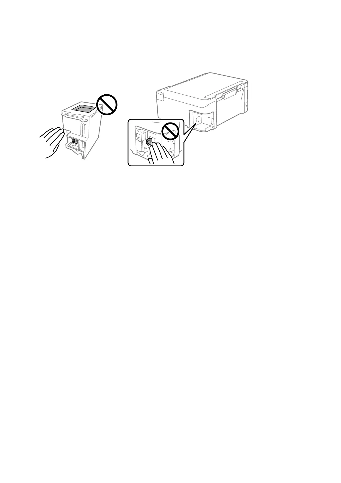 ❏ Do not touch the sections shown in the illustration. Doing so may prevent normal operation and you may get