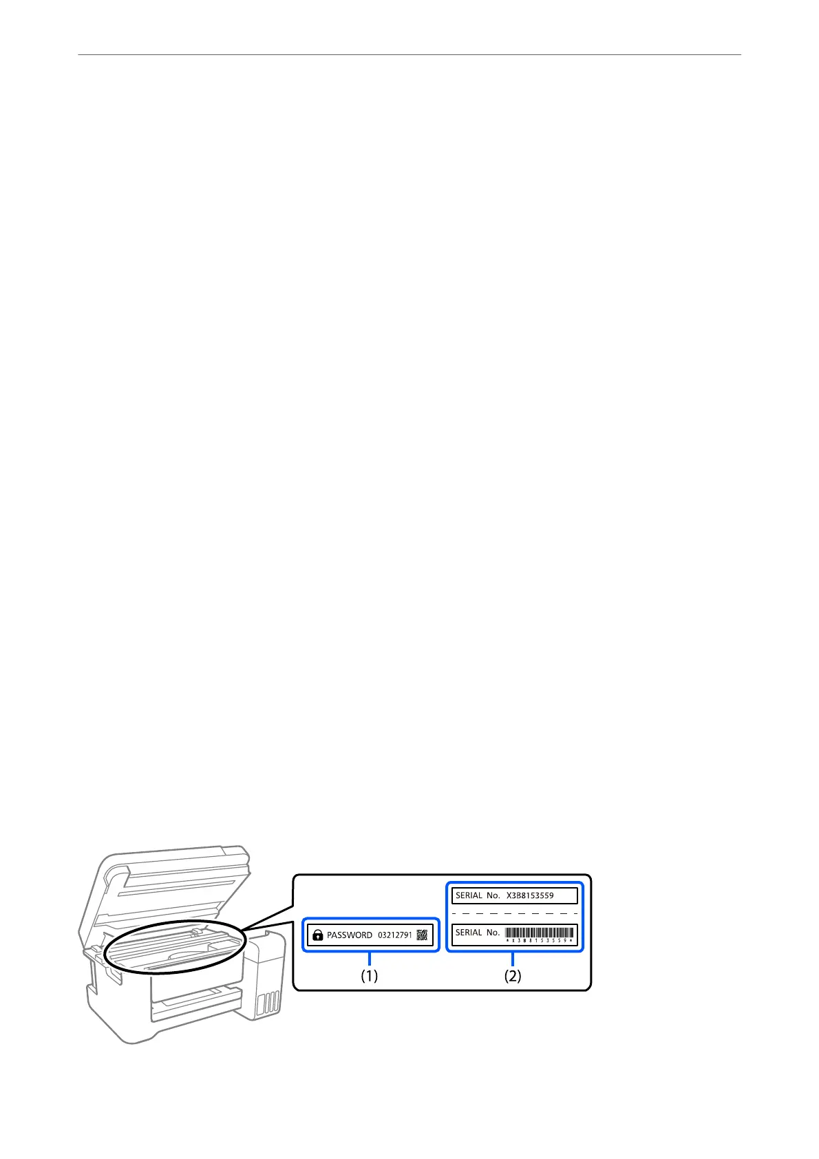 default value of the administrator password is printed on the label on the product itself, such as the one shown.
