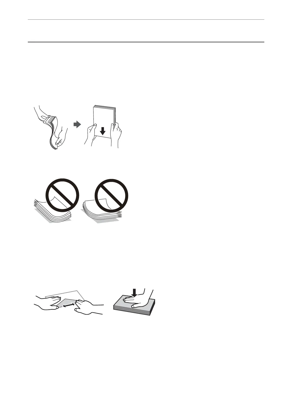 ❏ Fan and align the edges of the paper before loading. Do not fan or curl photo paper. Doing so may damage the