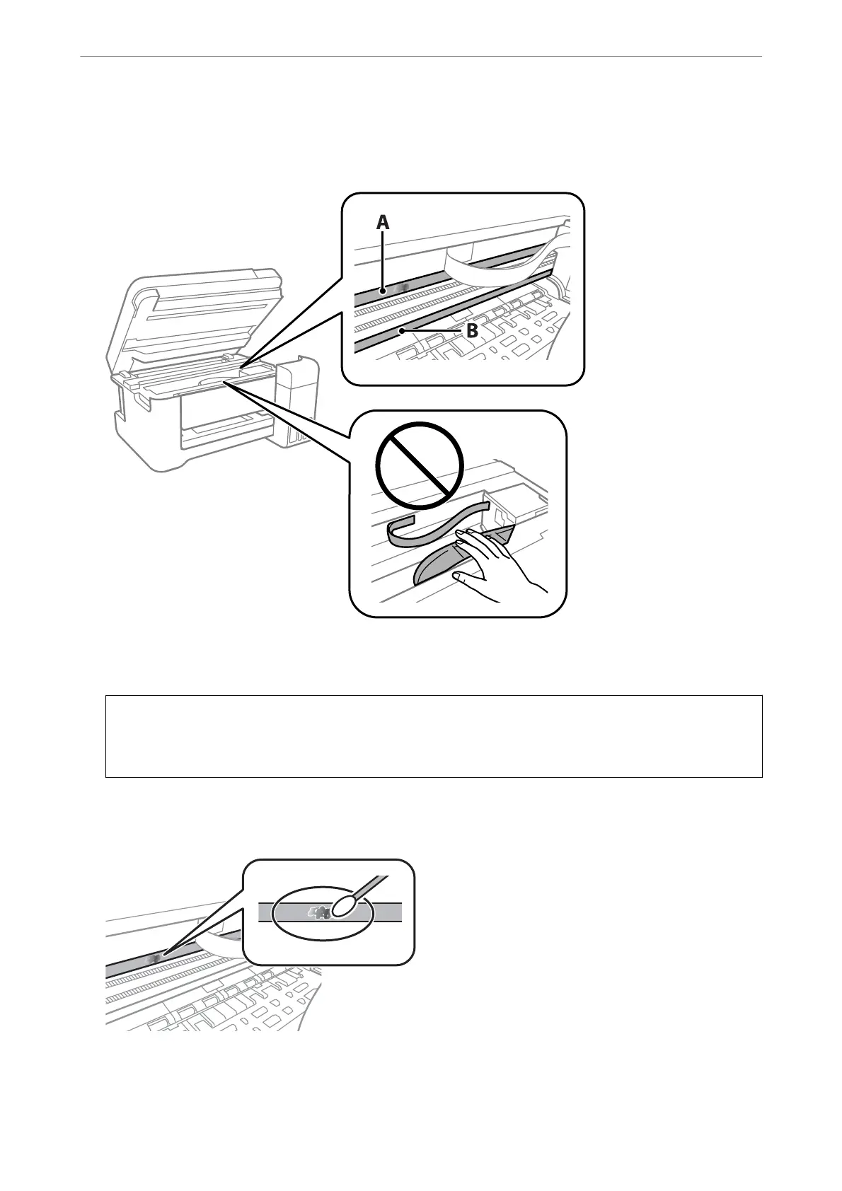 Be careful not to touch the rail (B). Otherwise, you may not be able to print. Do not wipe o the grease on the
