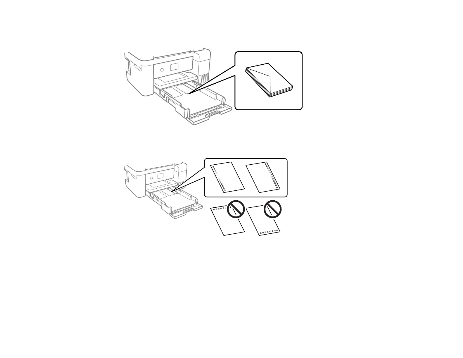 Insert up to 10 envelopes with the printable side facedown and flap edge left, as shown.