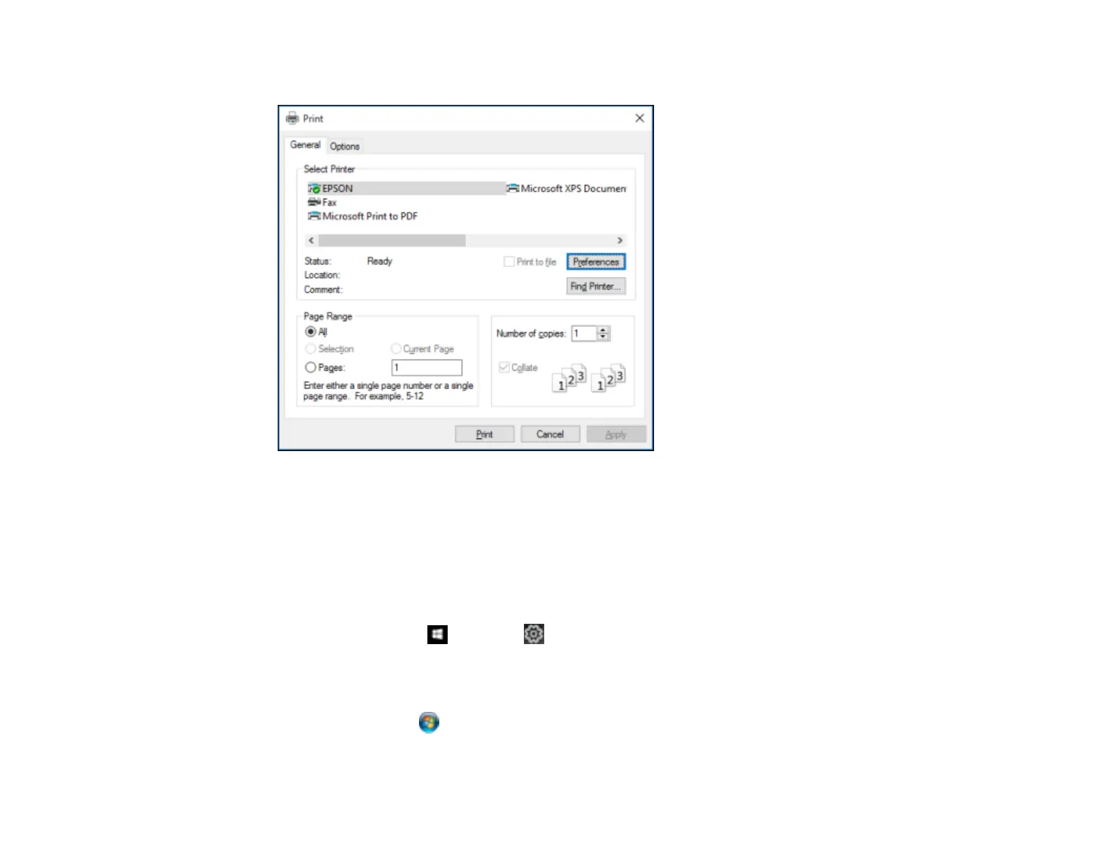 • Windows 7: Click and select Devices and Printers. Right-click your product and select