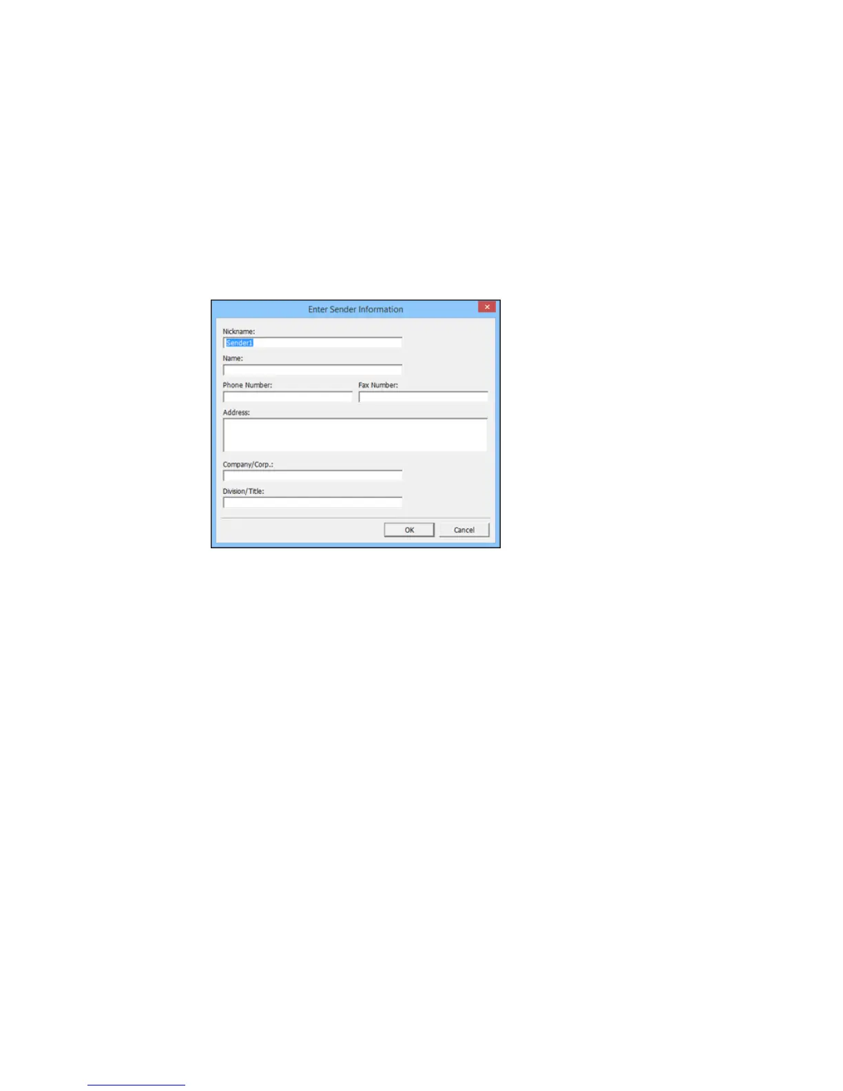 6. Enter your sender information so that recipients can identify the origin of the fax. Then click OK to