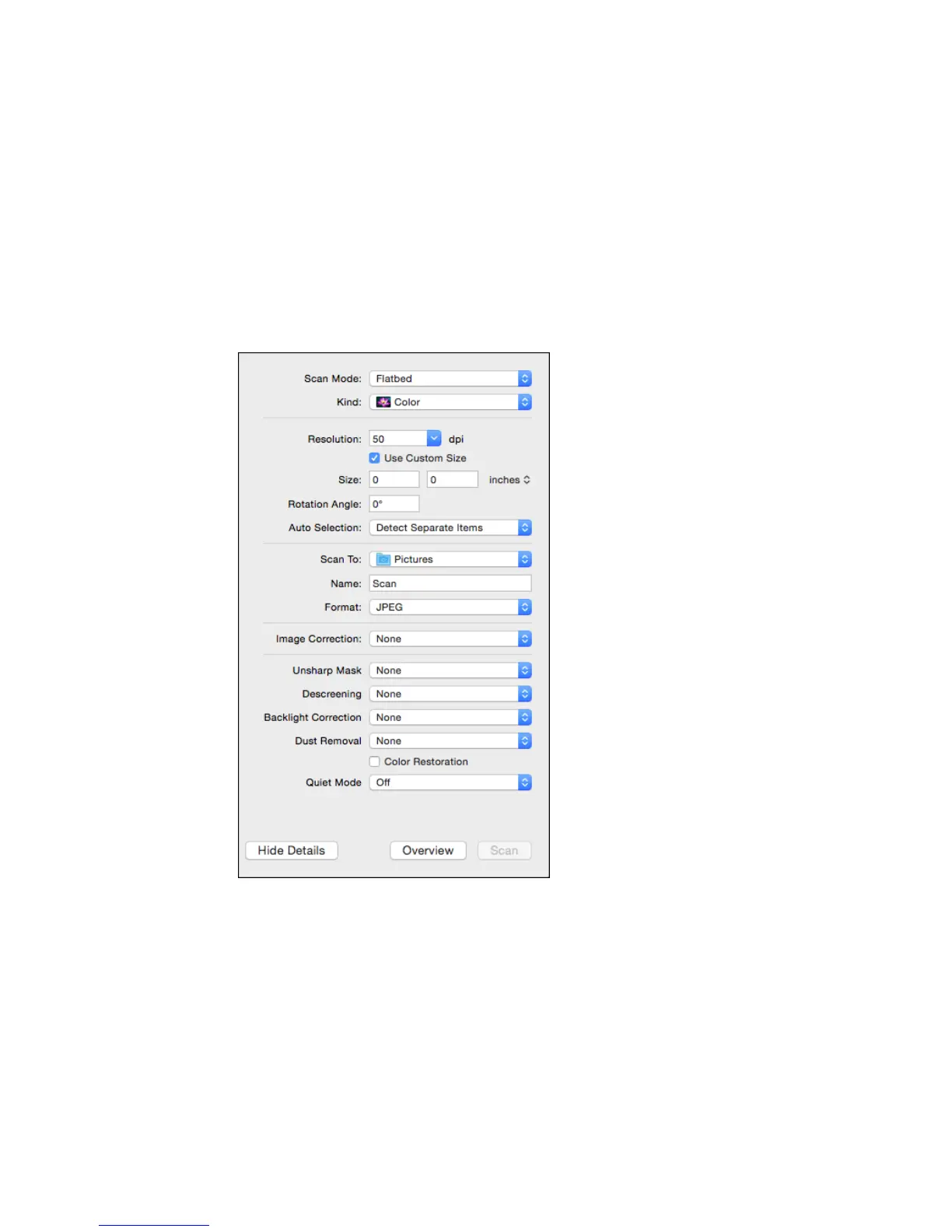 other available scan settings as necessary.