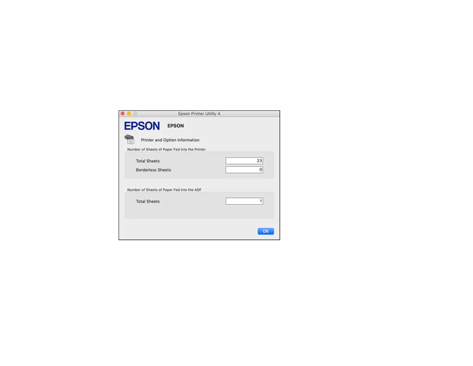 3. After checking the number of sheets fed into the printer, click OK to close the window.