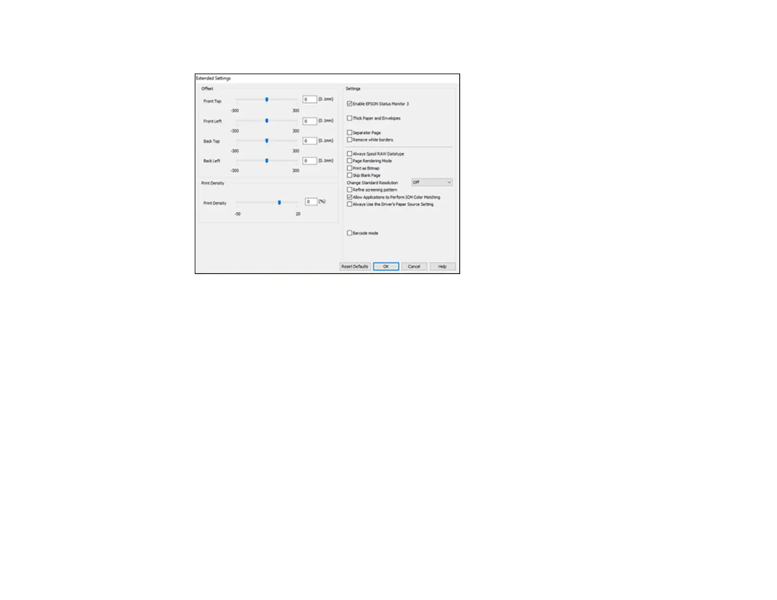 You can select from these settings on the Extended Settings window.
