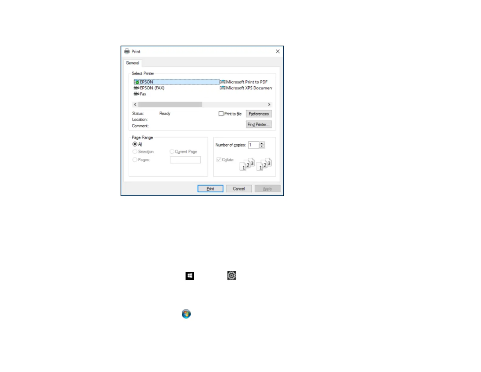 • Windows 7: Click and select Devices and Printers. Right-click your product and select